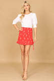 Introducing our Ruffle Hem Side Tie Floral Skirt, the perfect addition to your wardrobe. With its feminine ruffle hem and adjustable side tie, this skirt offers both style and comfort. Dress it up or down for any occasion. Embrace your inner fashionista and make a statement in our floral skirt.