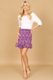 Embrace the beauty of spring with our Shirred Ruffle Hem Floral Skirt. The shirred ruffle hem adds a feminine touch to this floral piece, perfect for any occasion. Feel confident and stylish with this must-have addition to your wardrobe.