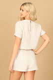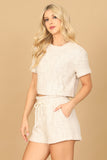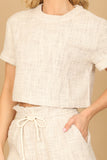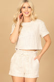 Elevate your summer wardrobe with our Short Sleeve Crop Top Waist Tie Short. The perfect mix of chic and comfort, this set features a stylish crop top with a waist tie, paired with a versatile pair of shorts. Dress it up or down for any occasion.
