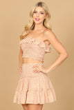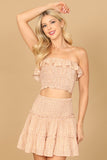 Enhance your wardrobe with our stylish TUBE RUFFLE DETAIL PRINTED TOP & SKIRT SET. This set features a flattering tube top with feminine ruffle details, paired with a matching printed skirt. Perfect for any occasion, this set will keep you comfortable and fashionable. Upgrade your style game today!