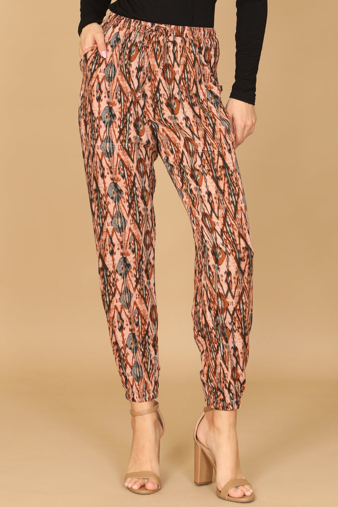 Elevate your casual style with our waist tie printed jogger pants. These pants feature a comfortable and adjustable waist tie for the perfect fit, making them ideal for all-day wear. With a trendy jogger design and eye-catching print, these pants will surely become a staple in your wardrobe.
