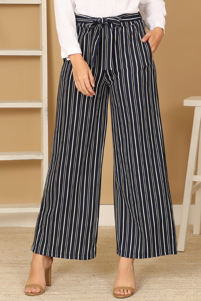 Effortlessly elevate your everyday look with our Waist Tie Stripe Square Pants. The waist tie adds a touch of sophistication while the striped pattern adds a playful flair. These pants are perfect for any occasion, providing both style and comfort. Stylish, yet practical - a must-have for any wardrobe.