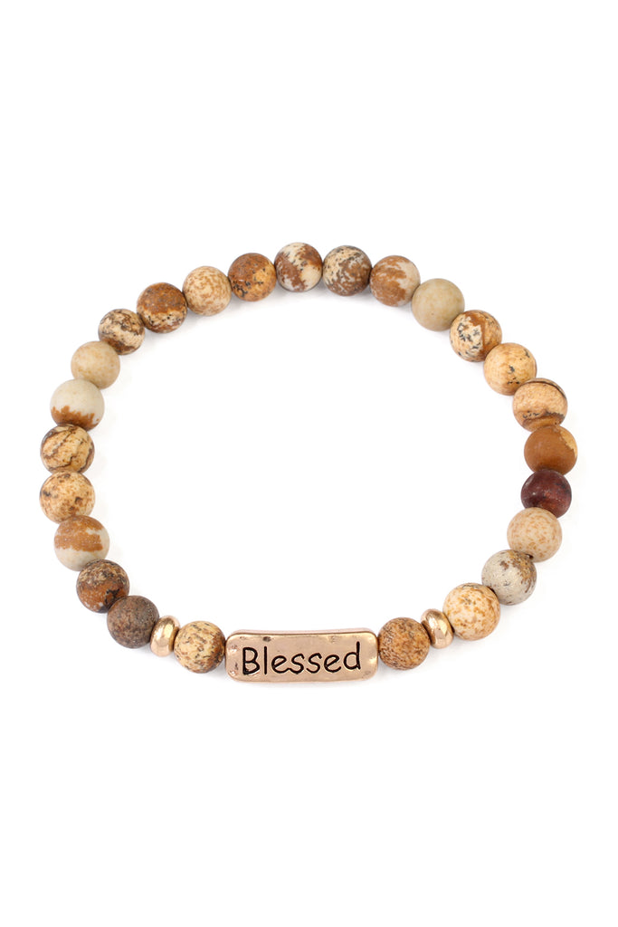 NATURAL STONE WITH LEATHER ACCENT BRACELET