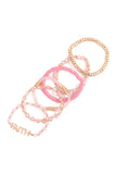 Bring a timeless touch to your jewelry collection with these stylish bracelets. Featuring multiple gold-toned slider accents that create a subtle contrast with faceted beads, offering you a unique look. Perfect for a range of occasions, these sets pair perfectly well with a pair of jeans or a knit cardigan dress.