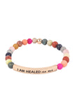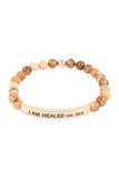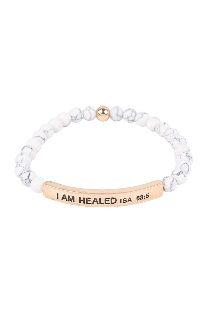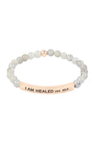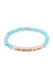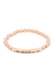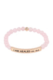 A dainty stretch bracelets with inspirational words engraved on the plaque.