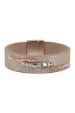 This stylish bracelet combines the texture of genuine leather with the shine of metal beads to create a uniquely trendy and eye-catching accessory. With an easy-to-use magnetic lock, you can be sure your bracelet will stay secure all day!