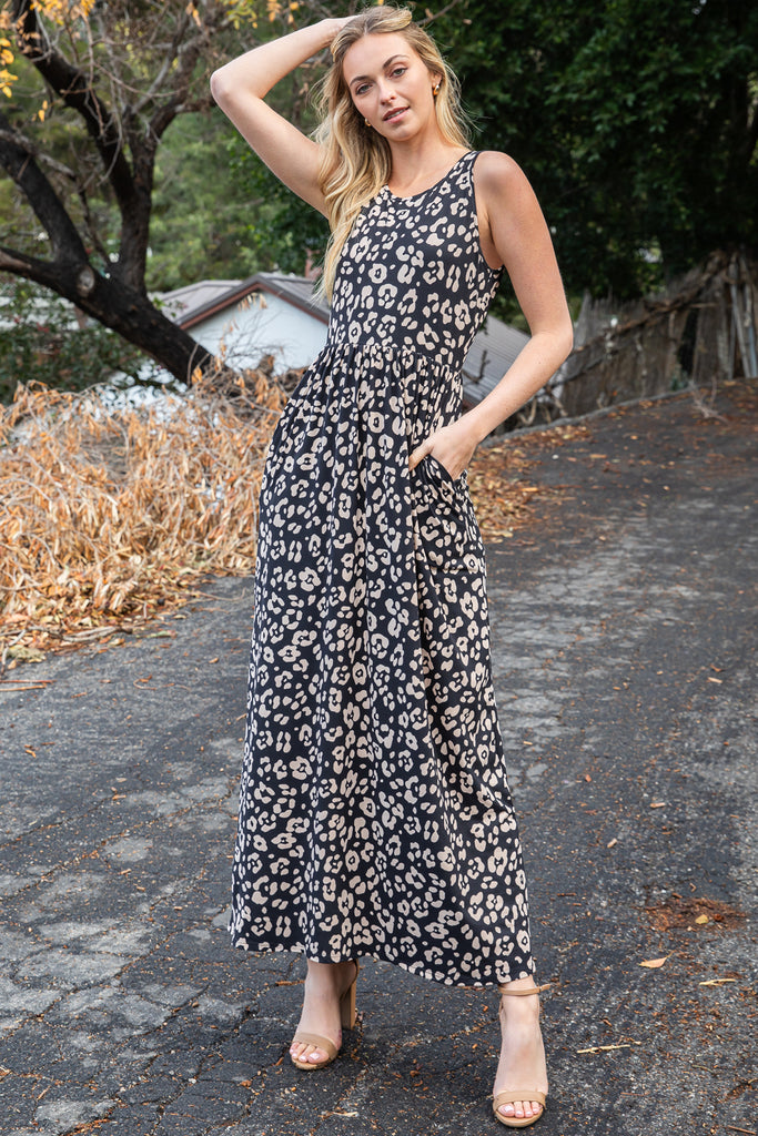 Roar into style with this wild and playful Animal Print Sleeveless Maxi Dress. Unleash your inner fashionista and make a statement with this on-trend dress. Perfect for any occasion, this dress will have you standing out from the pack. (Fierce and fashionable, all in one!)