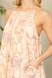 Enhance your style with our Floral Lace Halter Side Pocket Mini Dress. Made from high-quality floral lace, this dress features a halter neckline and functional pockets for added convenience. Perfect for a day out or a special occasion, this dress will elevate your look effortlessly.