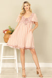 TIE STRAP SMOCKED RUFFLE NECK TIERED SOLID MINI DRESS