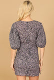 Add a touch of elegance to your wardrobe with our Half Puff Sleeve Ruched Side Floral Mini Dress. The half puff sleeves and ruched side detailing add a charming touch, while the floral print gives a feminine and timeless look. Perfect for a day out or a special occasion.