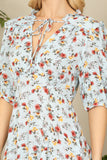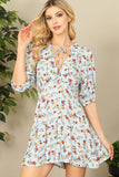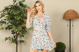 This romper features half puff sleeves and a v-neck with tie detail, creating a stylish and flattering look. Made from high-quality materials, this romper offers both comfort and sophistication. Perfect for any occasion, this versatile piece is a must-have for any fashion-forward individual.
