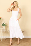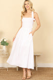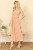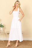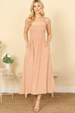 Elevate your summer style with our halter cross tie back dress. The smocked, pleated waist creates a flattering silhouette while the solid color allows for multiple styling options. Perfect for any occasion, this dress will have you looking effortlessly chic and comfortable all day long.