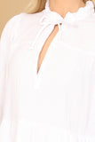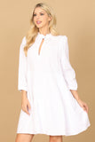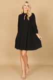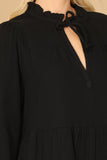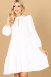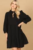 Elevate your style with our Long Puff Sleeve Keyhole Tie Tiered Dress. The long puff sleeves and keyhole tie add a touch of elegance, while the tiered design offers a flattering silhouette. Perfect for any occasion, this dress will have you looking and feeling your best.