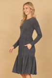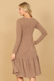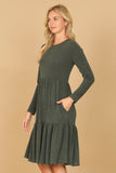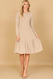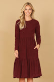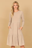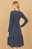 Stay comfortable and stylish all day long in our Long Sleeve Round Neck Chambray Tiered Dress. With its flowy tiered design, this dress is perfect for a casual day out or dressed up for a special occasion. The soft chambray fabric provides a cozy fit while the long sleeves keep you warm on cooler days.