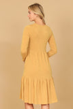 TIE STRAP SMOCKED RUFFLE NECK TIERED SOLID MINI DRESS