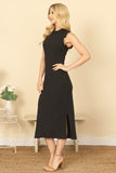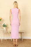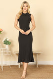 Flatter your figure in our MERROW DETAIL NECK AND SLEEVELSS BODYCON SOLID MIDI DRESS. The merrow neck detail adds a touch of elegance, while the bodycon fit accentuates your curves. Perfect for any occasion, this dress will have you looking and feeling confident and stylish.