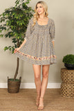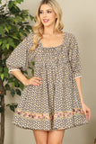 Elevate your style with our Multi Half Puff Sleeve Babydoll Mini Dress. This dress features half puff sleeves, giving you a playful and girly look. The babydoll silhouette flatters all body types, making it a versatile and comfortable choice. Perfect for any occasion, this dress is a must-have in your wardrobe!