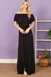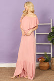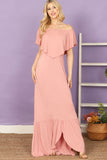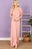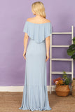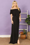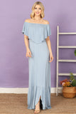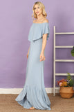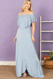 Get ready to turn heads in this elegant Off Shoulder Ruffle Detail Dress. With its flattering off shoulder design and floor length silhouette, you'll feel confident and glamorous at any event. The ruffle detail adds a touch of feminine charm, making this dress a must-have for any special occasion.