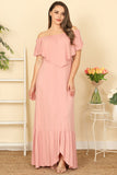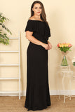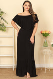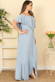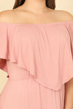 Stay cool and stylish in our Plus Size Off Shoulder Solid Maxi Dress. With its lightweight fabric and off shoulder design, it's perfect for any sunny day. Its flowy silhouette will flatter any body type. Look effortlessly chic and comfortable in this must-have dress.