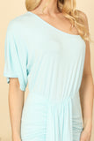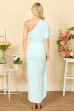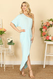 This elegant ONE SHOULDER HALF SLEEVE RUCHED WRAP FRONT MIDI DRESS is guaranteed to turn heads. The figure-flattering design accentuates your curves, while the wrap front adds a touch of sophistication. Perfect for any occasion, this dress will make you feel confident and stylish.