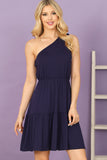 This One Shoulder Sleeveless Tiered Ruffle Solid Mini Dress is perfect for a casual day out or dressed up for a special occasion. The one shoulder design and tiered ruffle detailing add a touch of elegance to this solid colored dress. Stay comfortable and stylish all day long.