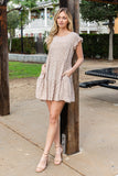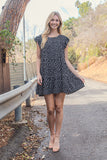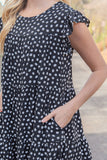 Get ready to turn heads in our flirty Pebble Ruffle Sleeve Tiered Mini Dress! With its unique pebble ruffle sleeves and tiered design, this dress is both playful and stylish. Perfect for any event, it's sure to bring out your fun and flirty side.