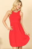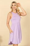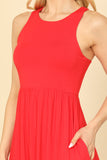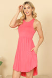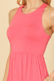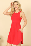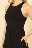 Add some effortless style to your wardrobe with our PLEATED WAIST SIDE POCKET CURVE HEM MINI TANK DRESS. The pleated waistline adds a flattering shape, while the side pockets and curved hem provide functionality and a touch of flair. Perfect for any occasion, this dress is a must-have for the fashion-forward woman.