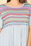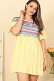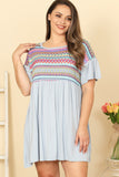 TIE STRAP SMOCKED RUFFLE NECK TIERED SOLID MINI DRESS