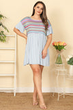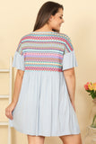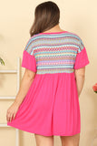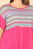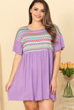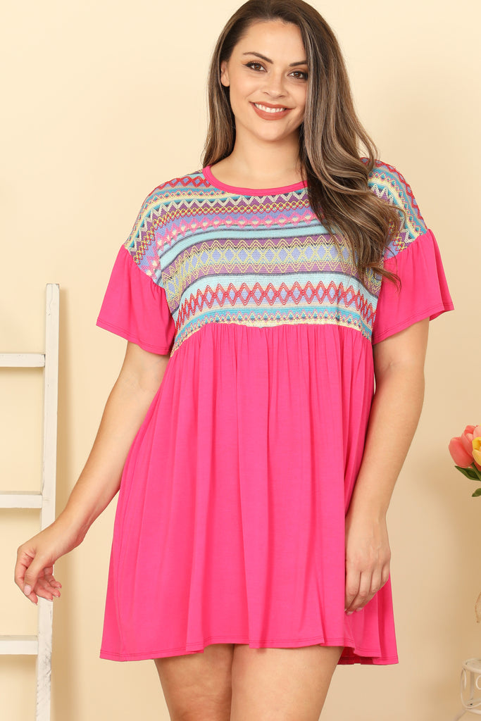 Elevate your style with our Plus Size Ruffle Sleeve Contrast Printed Mini Dress. This dress features flattering ruffled sleeves and a contrast print that will turn heads. Perfect for any occasion, this dress will make you feel confident and stylish. Get yours today!