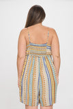 TIE STRAP SMOCKED RUFFLE NECK TIERED SOLID MINI DRESS