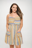 This versatile romper keeps you stylish and comfortable with its adjustable spaghetti straps, front pockets, and flattering fit for plus sizes. Perfect for any occasion, it's a must-have addition to your wardrobe. Enjoy the convenience of a one-piece outfit with this multi-functional romper.