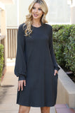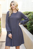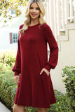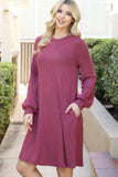 Stay cozy and look great in this Puff Long Sleeve Hacci Brushed Dress. Featuring a fashionable puff sleeve, this dress helps you create a stylish look while also keeping you warm. Whether you’re headed to a party or enjoying a day indoors, this dress will keep you stylish and snug.