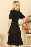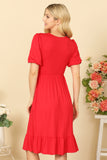 TIE STRAP SMOCKED RUFFLE NECK TIERED SOLID MINI DRESS