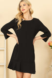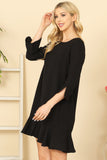 Upgrade your wardrobe with our Quarter Sleeve Ruffle Hem Solid Dress. Designed with elegant ruffles and quarter length sleeves, this dress is perfect for any occasion. Stay stylish and comfortable all day with its soft and solid fabric. Add this dress to your collection for a versatile and chic look.