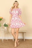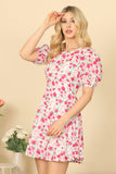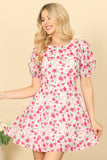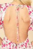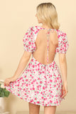 Feel pretty and feminine in our Round Neck Puff Sleeve Open Back Floral Mini Dress. This dress boasts a flattering round neckline, delicate puff sleeves, and a playful open back design. Adorned with a beautiful floral print, this dress is perfect for any occasion. Embrace your inner fashionista and make a statement in this must-have dress.