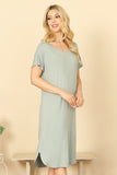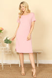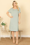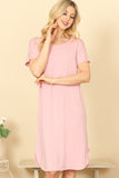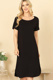 Upgrade your wardrobe with our Round Neck Short Sleeve Side Slit Solid Dress. Made with comfort and style in mind, this dress boasts a round neck and short sleeves for a casual look. The side slit adds a touch of elegance and modernity to this classic solid dress. Perfect for any occasion, this dress will make you feel confident and stylish.