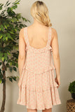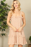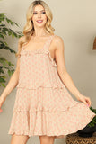 TIE STRAP SMOCKED RUFFLE NECK TIERED SOLID MINI DRESS