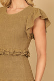 Add a touch of femininity to your wardrobe with our Ruffle Detail Shirring Mini Dress. The delicate ruffle details and shirring add a subtle elegance to this mini dress. Perfect for any occasion, this dress will make you feel confident and stylish.