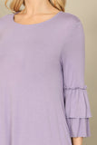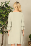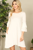 TIE STRAP SMOCKED RUFFLE NECK TIERED SOLID MINI DRESS