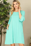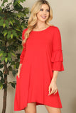 This Ruffle Half Sleeve Solid Dress is a versatile and stylish addition to any wardrobe. Its ruffled half sleeves add a touch of femininity, while the solid color is perfect for both casual and formal occasions. Made with high-quality fabric, it offers both comfort and style.