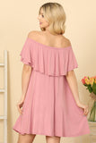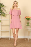 Introducing our stylish Ruffle Off Shoulder Solid Dress! This dress features delicate ruffles and an off the shoulder design, perfect for any occasion. With its solid color, it's easy to dress up or down. Don't miss out on this versatile and trendy piece!