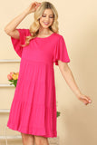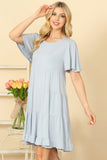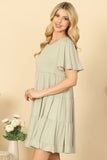 Effortlessly elevate your wardrobe with our Ruffle Short Sleeve Tiered Solid Dress. The tiered design and ruffle short sleeves add a touch of playful charm to this versatile dress. Perfect for any occasion, this dress is a must-have for every fashion-forward individual.