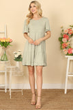 TIE STRAP SMOCKED RUFFLE NECK TIERED SOLID MINI DRESS