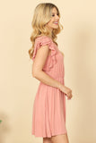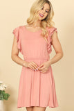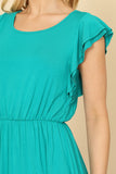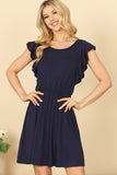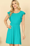 Effortlessly chic and versatile, our Ruffle Sleeve Cinch Waist Solid Mini Dress is the perfect addition to your wardrobe. The ruffle sleeves add a feminine touch while the cinch waist creates a flattering silhouette. Available in a variety of solid colors, this dress is perfect for any occasion. Embrace style and comfort with this must-have dress.