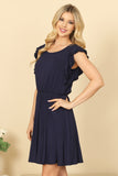 TIE STRAP SMOCKED RUFFLE NECK TIERED SOLID MINI DRESS