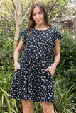 Elevate your style with our Ruffle Sleeve Side Pocket Floral Tiered Mini Dress. Featuring delicate ruffle sleeves, convenient side pockets, and a stunning floral print, this dress is both fashionable and functional. Perfect for any occasion, this dress is a must-have for your wardrobe.