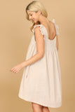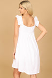 TIE STRAP SMOCKED RUFFLE NECK TIERED SOLID MINI DRESS