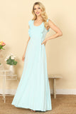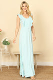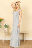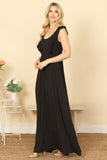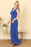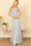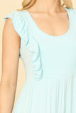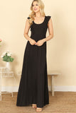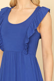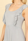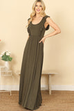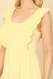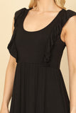 Embrace effortless elegance with our Ruffle Sleeveless Pleated Waist Solid Maxi Dress. The gorgeous ruffle detailing and pleated waist create a beautifully flattering silhouette, while the solid color adds versatility to your wardrobe. Perfect for any occasion, this dress will become your go-to piece.