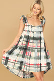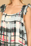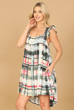 Introducing our Ruffle Strap Plaid High-Low Mini Dress, featuring charming ruffle straps and a trendy plaid pattern. Perfect for any occasion, this dress will make you stand out with its flattering high-low hem and stylish design. Upgrade your wardrobe with this must-have piece today.