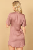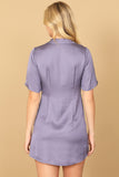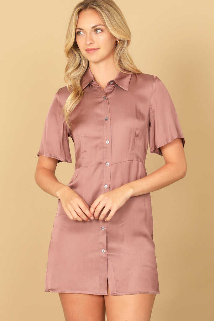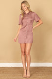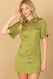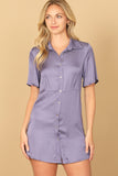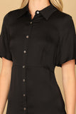 Stay cool and stylish with our short sleeve button down mini dress. Perfect for any occasion, this dress features a flattering fit and a convenient button down design. Get ready to turn heads and feel confident in this must-have piece for your wardrobe.